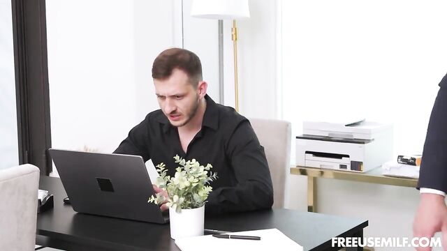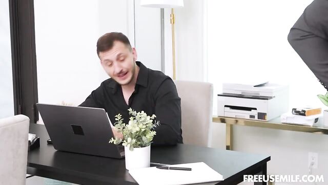Description:Danny and Vince have been working for this very important firm for a long time now. Having a high-paying job comes with many stressful drawbacks. You're often staying up late, essentially living in the office, which eventually leads to a drop in productivity and morale. The constant pressure to perform at the highest level can be overwhelming, leaving little time for personal life or relaxation. The demand for perfection can make it difficult to step away from work, creating a vicious cycle of exhaustion and dissatisfaction, that’s why the higher-ups hired three girls to help carry the load… Angelina, Audrey, and Jupiter have one mission and one mission only: to please and destress the very important men doing their very important jobs. They always start their days bending over a wall so the guys, as soon as they get to the office, can come up behind them, lift their tight pencil skirts, and slowly fuck their pussies to begin their shift stress-free and relaxed. After that is free-use city in there, the guys use their hot bodies in whichever way they please: on their knees sucking their cocks, up on the table to get fucked or even fucking each other as they discuss important work stuff. The combinations are endless and limitless, and the girls love the fact that they get to help them improve their productivity while getting their pussies pounded all day long and going home with their pretty faces full of cum!