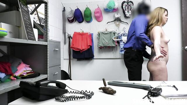 Description:Security officer Mike Mancini brings suspected thief Crystal Taylor to the back room and starts confronting her about her crime, telling her he has footage of her commiting the theft. At first, Crystal refuses to cooperate but when Officer Mancini threatens to call the police, she realizes her best way out of this one is to obey Officer Mancini’s every command.