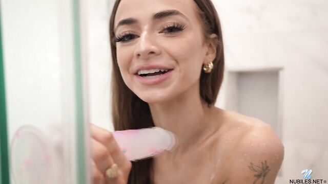 Description:Oh Nikki Nicole, you so fine you absolutely blow our minds with your sheer lingerie and silky bathrobe. You're even finer in the shower, with the warm water pouring down your petite teen body. Did we mention how good you look as you rub your clit and fuck yourself with a dildo until you cum?