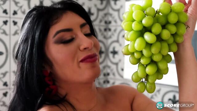 Description: Eating a lot of fruit is a great way to maintain a healthy diet. Watching busty Latina Selena Adams play with fruit in her kitchen is a great way to jack off and shoot a healthy load of cum. Selena isn't really dressed for kitchen duties. She's wearing lingerie that shows off her curvy, sexy body. She plays with the fruit, then she gets up on the kitchen counter and rubs one out.
